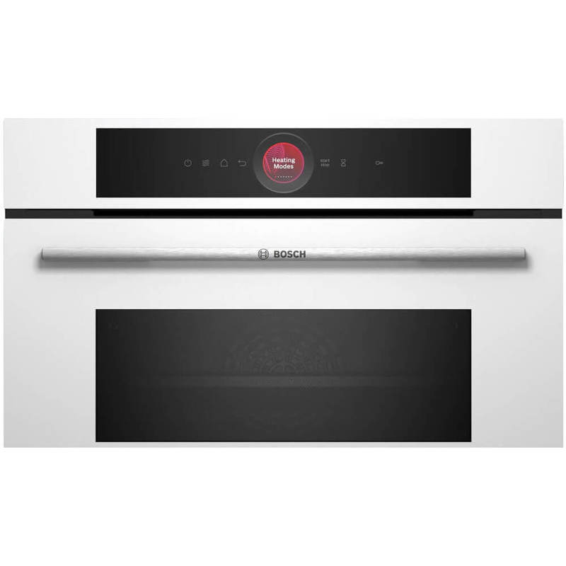 Встраиваемый духовой шкаф Bosch CMG7241W1, белый цвет компактными габаритами 45,5x59,5x54,8 см оснащен откидной дверью с амортизаторами SoftOpen, SoftClose и вставками из термостойкого стекла (три слоя). Камера вместительностью 45 л укомплектована трехуровневыми телескопическими направляющими для установки противней и LED-лампой.