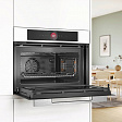 Встраиваемый духовой шкаф Bosch CMG7241W1, белый цвет компактными габаритами 45,5x59,5x54,8 см оснащен откидной дверью с амортизаторами SoftOpen, SoftClose и вставками из термостойкого стекла (три слоя). Камера вместительностью 45 л укомплектована трехуровневыми телескопическими направляющими для установки противней и LED-лампой.