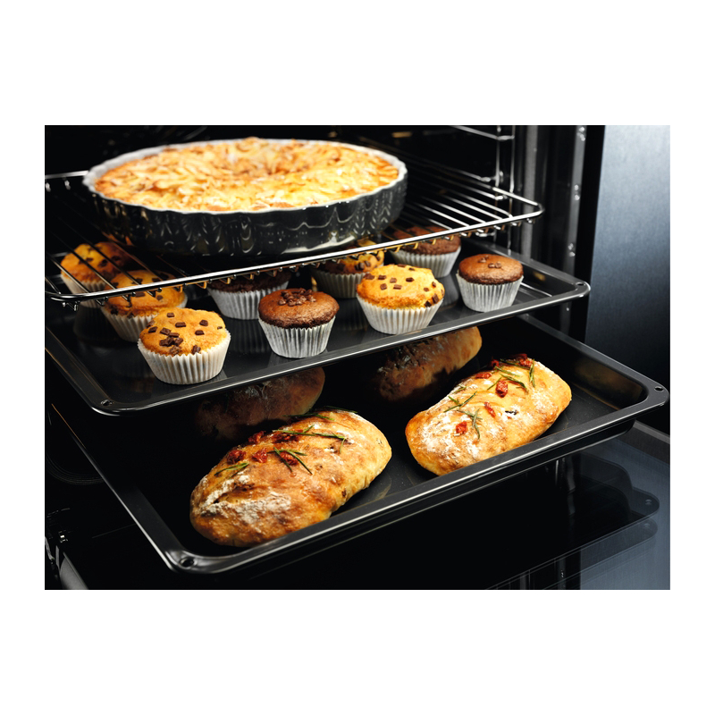 Этот духовой шкаф отличается широким набором функций, которые делают его использование максимально удобным и эффективным. Утапливаемые переключатели обеспечивают эстетичный внешний вид и удобство использования. Духовой шкаф оснащен таймером отключения, функцией отложенного старта и будильником, что позволяет планировать приготовление блюд и контролировать время. Телескопические направляющие FlexiRunners с возможностью изменения высоты установки обеспечивают удобство при работе с противнями и решетками.