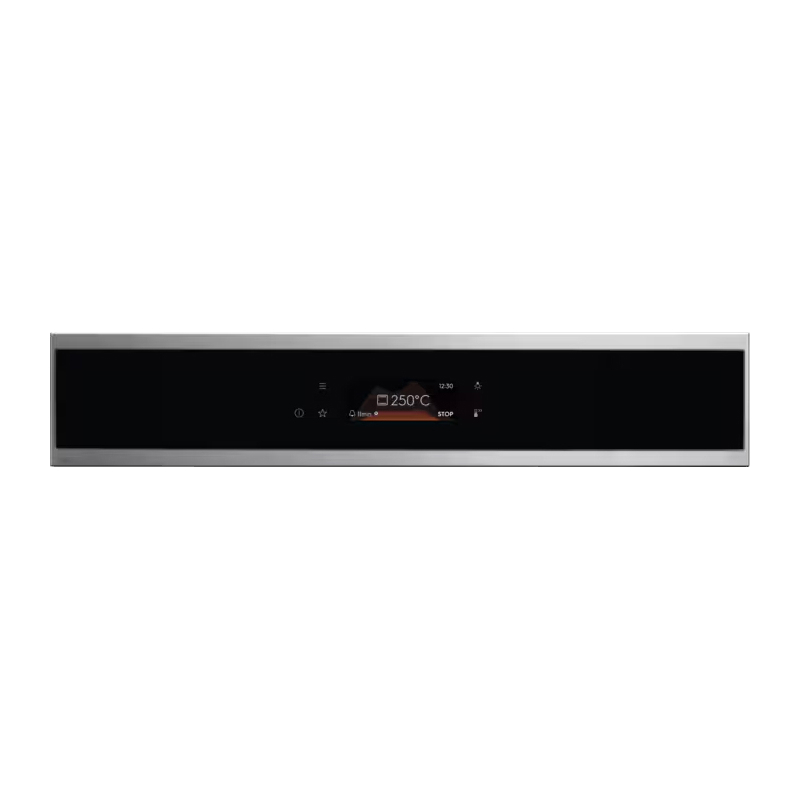 Прибор изготовлен в элегантном корпусе из нержавеющей стали, который подчеркивает современный минимализм и статус кухни, оставаясь практичным в уходе. Аккуратная передняя панель со встроенным дисплеем и сенсорными переключателями выглядит сдержанно и обеспечивает интуитивное управление. Лаконичный дисплей в сочетании с сенсорами делает интерфейс понятным. Тонкая рамка и матовая текстура металла минимизируют видимость отпечатков. Трехслойная дверца с тремя стеклами поддерживает эстетику и безопасность, а механизм плавного закрывания обеспечивает комфортную и бесшумную эксплуатацию.