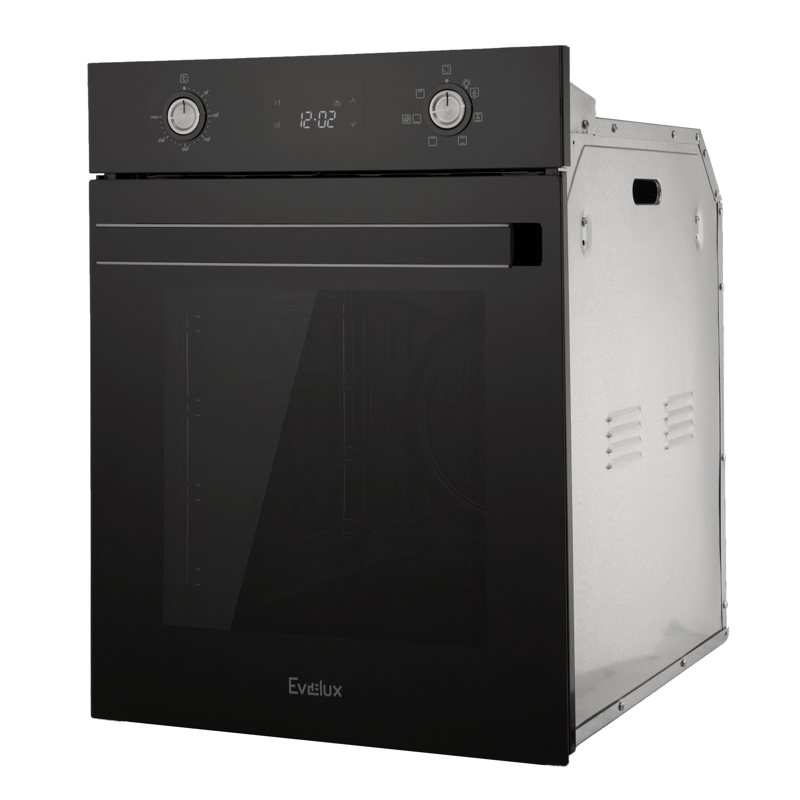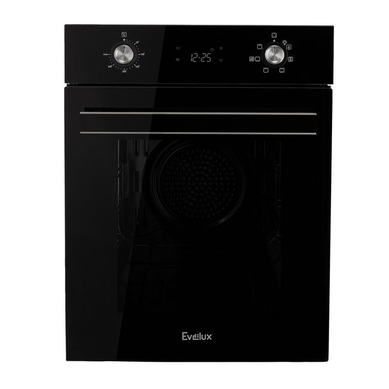 EVELUX EO 430 PB — это встраиваемый узкий электрический духовой шкаф шириной 45 см, который сочетает в себе элегантный дизайн, функциональность и продуманные технологии для комфортного приготовления. Модель оснащена сенсорным управлением на черной стеклянной панели, дисплеем и широким набором аксессуаров, что делает её отличным выбором для современной кухни с ограниченным пространством.