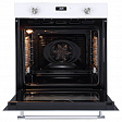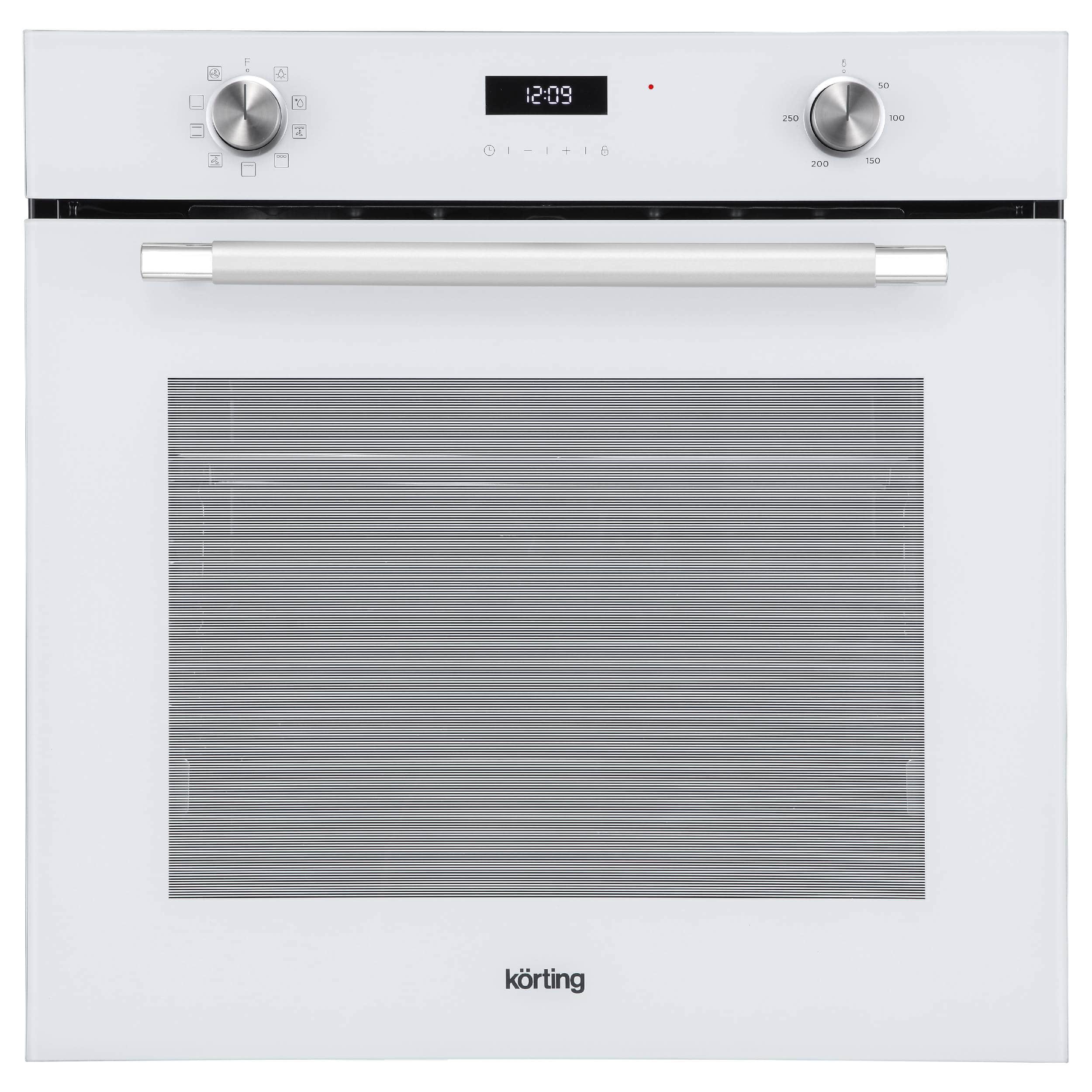 Духовой шкаф выполнен в стильном дизайне с белым стеклом и серебристо-хромированной ручкой, что делает его отличным дополнением к любой современной кухне.