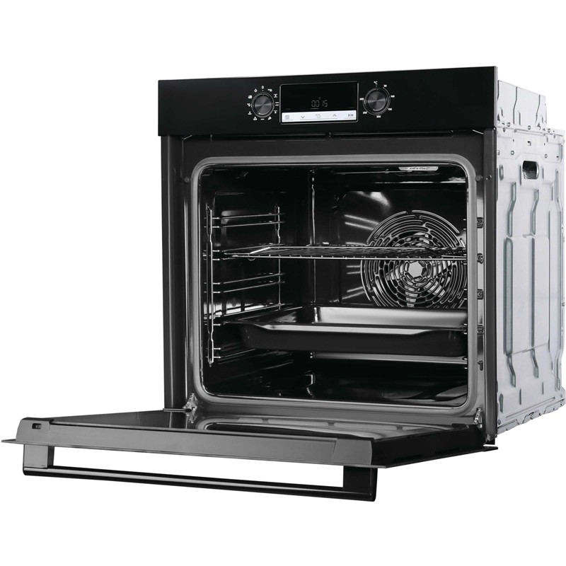 Данная модель духового шкафа оснащена сенсорным управлением VISION LED и панелью управления из нержавеющей стали, что делает его использование удобным и простым. Духовой шкаф предлагает десять различных режимов приготовления, включая режим быстрого нагрева и функцию "Гратен". Он также оснащен утапливаемыми поворотными регуляторами, LED дисплеем белого цвета и двухслойным остеклением. Объем духовки составляет 77 литров, что позволяет готовить блюда для семьи или компании гостей. Духовой шкаф оснащен системой очистки камеры Steam Cleaning и автоматическим отключением. В комплекте идут глубокий противень и хромированная решетка. Духовой шкаф выполнен в черном цвете, что придает ему современный и стильный вид.