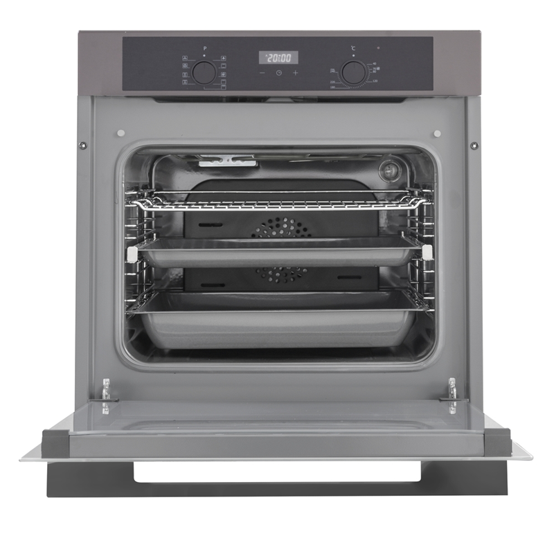 Эмаль легкой очистки серого цвета и каталитическая очистка облегчают уход за духовым шкафом, обеспечивая его долговечность и устойчивость к загрязнениям. Это делает процесс поддержания чистоты более простым и быстрым.