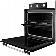Дверца духового шкафа и внутреннее стекло снимаются, что значительно упрощает процесс очистки. Хромированные направляющие для противней обеспечивают легкое скольжение посуды, а съемная конструкция дает возможность быстро извлекать их для мытья. Два слоя закаленного стекла в дверце эффективно удерживают тепло внутри камеры и гарантируют безопасность при работе с высокими температурами.