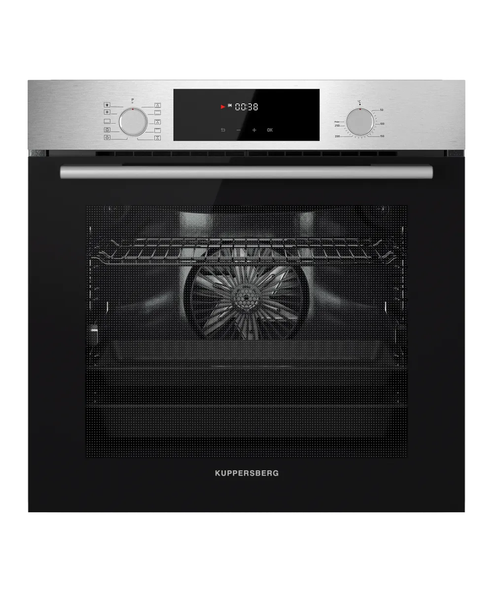 Утапливаемые поворотные элементы в сочетании с сенсорным дисплеем обеспечивают контроль над процессом приготовления. Встроенный таймер позволяет точно соблюдать рецептуру, по истечении заданного времени прибор отключается автоматически. Внутреннее освещение дает возможность визуально контролировать состояние блюд без открывания дверцы.