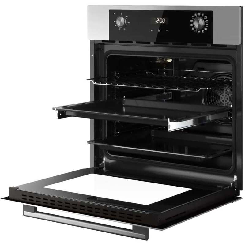 Духовой шкаф обладает 12 режимами работы, включая традиционный нагрев, гриль, разморозку и быстрый нагрев. Наличие функции конвекции обеспечивает равномерное распределение тепла внутри духовки и гарантирует идеальный результат приготовления.