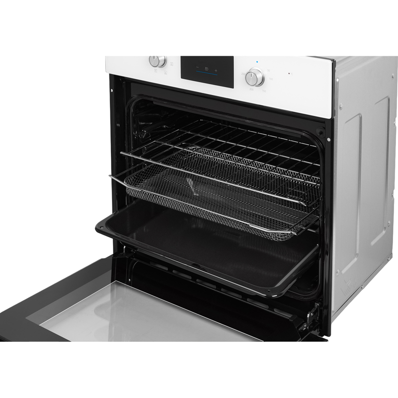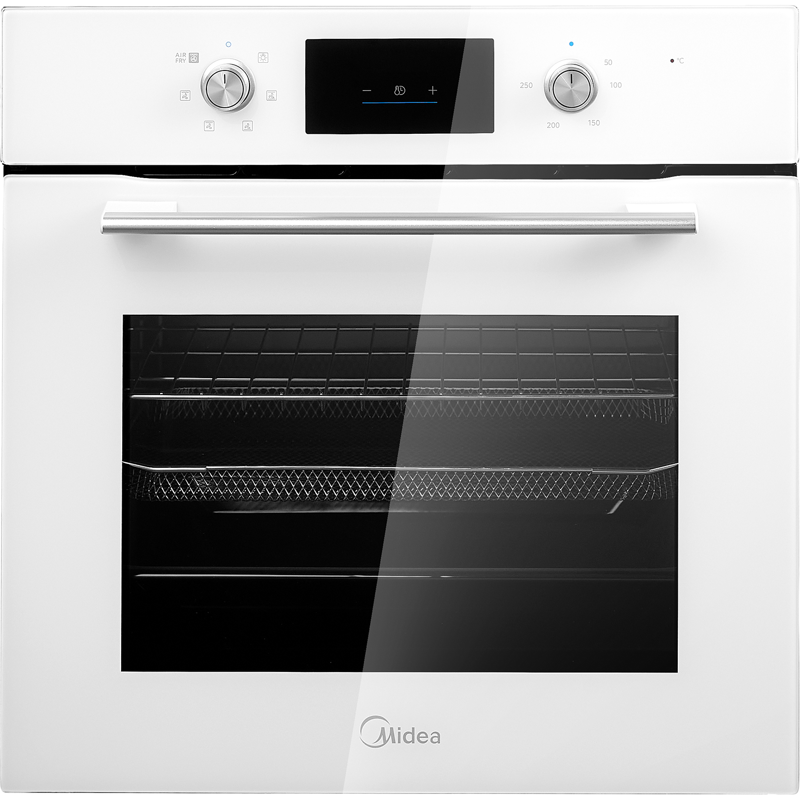Встраиваемый духовой шкаф Midea MO47007GW выполнен в белом цвете, оснащен утапливаемыми ручками. Модель органично вписывается в стиль модерн, подчеркивая лаконичность и функциональность интерьера. Благодаря полностью стеклянной дверце с двойным остеклением и LED-дисплею устройство выглядит технологично и позволяет визуально контролировать процесс приготовления.