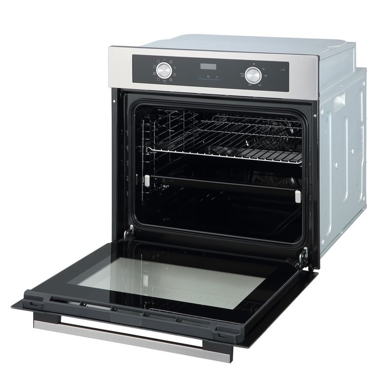Прибор выполнен в элегантном дизайне цвета нержавеющей стали, гармонично вписываясь в современные интерьеры кухонь и создавая стильный акцент. Прочный материал корпуса обеспечивает устойчивость к механическим повреждениям и царапинам, продлевая срок службы устройства. Эмаль легкой очистки облегчает уход за внутренней поверхностью, сохраняя гигиеничность и чистоту даже после интенсивного использования. Особое внимание уделено безопасности эксплуатации: стекло дверцы многослойное, предотвращающее перегрев поверхности снаружи, обеспечивая защиту рук от ожогов.