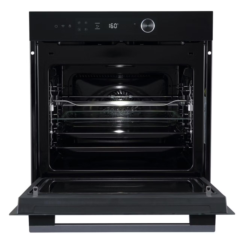 Прибор обладает компактными для своей функциональности размерами и предназначен для встраивания в стандартную нишу шириной 60 см. Его лаконичный черный дизайн с сенсорной панелью управления и темно-серой фурнитурой органично впишется в современный кухонный гарнитур. Несмотря на внешнюю сдержанность, внутреннее пространство впечатляет: объем камеры составляет 72 литра, что достаточно для одновременного приготовления нескольких блюд. Безопасность и комфорт обеспечены за счет четырехслойного стекла дверцы, которое остается холодным снаружи, а также системы принудительного охлаждения, которая не позволяет корпусу перегреваться. Съемная дверца значительно упрощает процесс очистки.