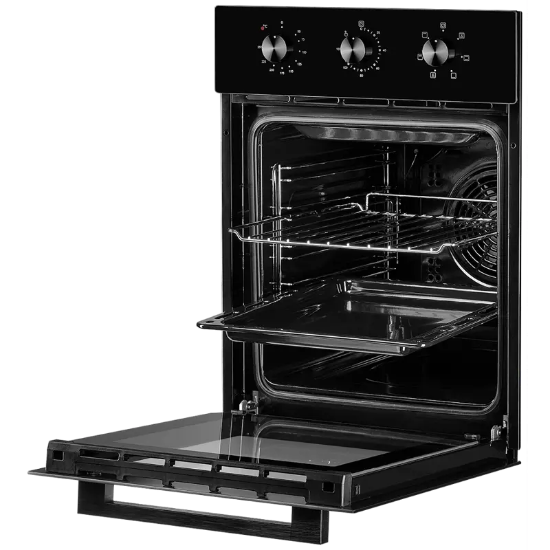 Духовой шкаф предназначен для встраивания в кухонную мебель. Он имеет компактные размеры, что позволяет легко интегрировать его в стандартные кухонные гарнитуры. Корпус выполнен из прочных материалов, обеспечивающих долговечность и устойчивость к высоким температурам.