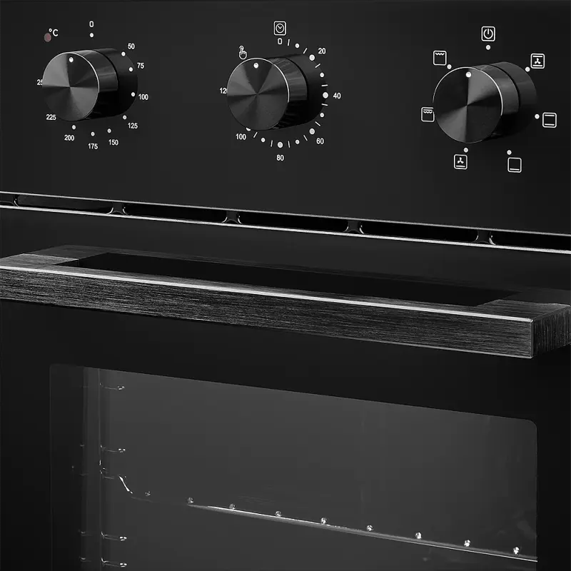 Управление духовым шкафом осуществляется с помощью механических переключателей, что делает его простым и интуитивно понятным в использовании. Модель оснащена несколькими режимами нагрева, включая верхний и нижний нагрев, гриль, а также комбинированные режимы для равномерного приготовления блюд.
