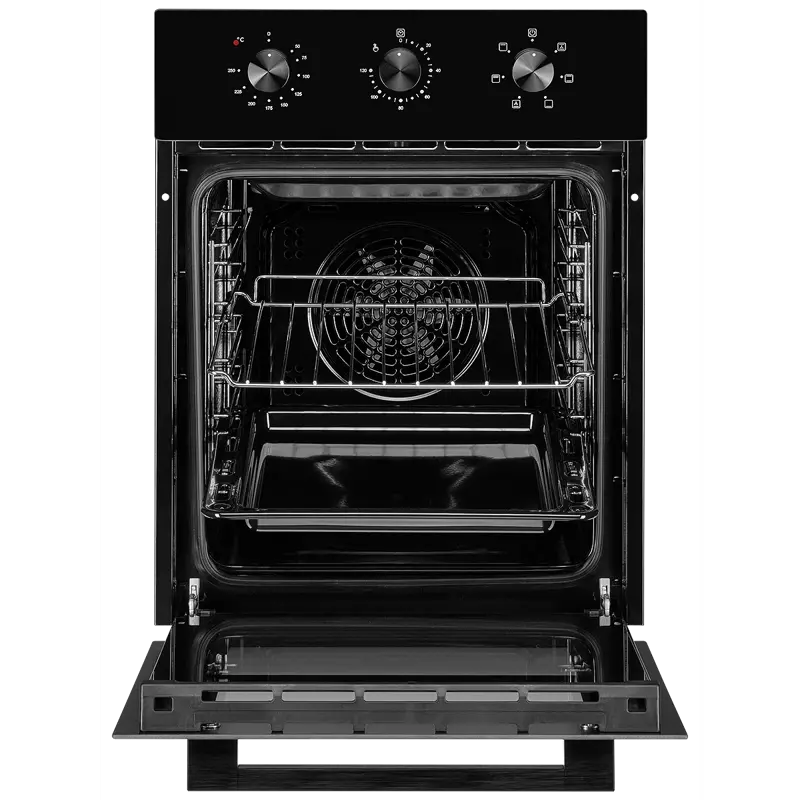 Духовой шкаф предназначен для встраивания в кухонную мебель. Он имеет компактные размеры, что позволяет легко интегрировать его в стандартные кухонные гарнитуры. Корпус выполнен из прочных материалов, обеспечивающих долговечность и устойчивость к высоким температурам.