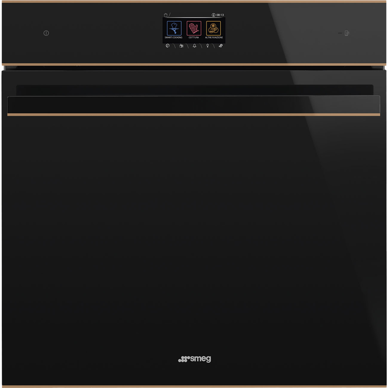 Электрический духовой шкаф SMEG SO6604M2PNR, комбинированный с микроволновой печью, можно встраивать в кухонную тумбу или колонну глубиной 60 см. Фасад в современном стиле выполнен из закаленного стекла Eclipse и оснащен откидной дверцей с четырехслойным стеклопакетом и функцией плавного открывания и закрывания. Тангенциальное охлаждение работает во время любого режима приготовления, предотвращая нагрев корпуса духового шкафа и соседней мебели.