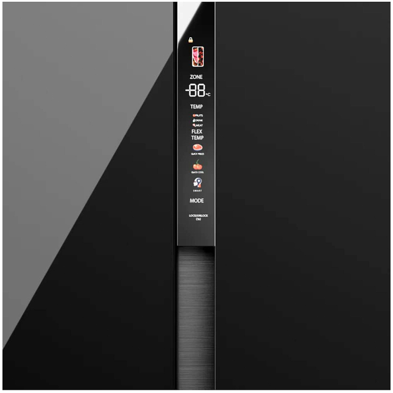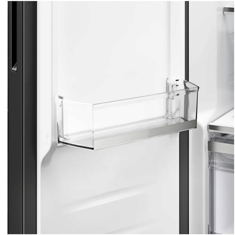 Черный цвет, в который окрашен холодильник, придаёт ему современный и стильный вид, что позволяет легко вписать его в любой интерьер. Размеры устройства составляют 191,2 см в высоту, 91,1 см в ширину и 60 см в глубину, что делает его идеальным выбором для больших и средних кухонь.