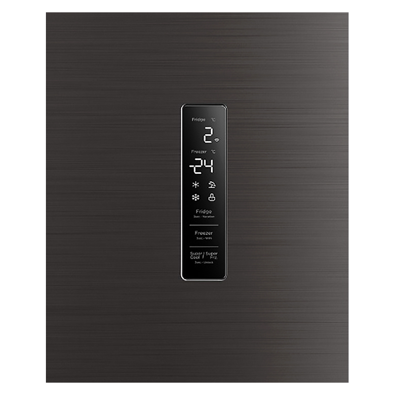 Управление холодильником интуитивно понятно благодаря внешнему дисплею с индикацией температуры. Такие функции, как «Суперзаморозка» и «Суперохлаждение», позволяют быстро подготовить прибор к загрузке большого количества продуктов. Режим «Отпуск» переводит холодильник в экономный режим работы, когда дома долгое время никого нет. Надежная блокировка от детей предотвращает случайное изменение настроек, а звуковая индикация предупредит об открытой двери. В верхнем отделении установлено экономичное LED-освещение.