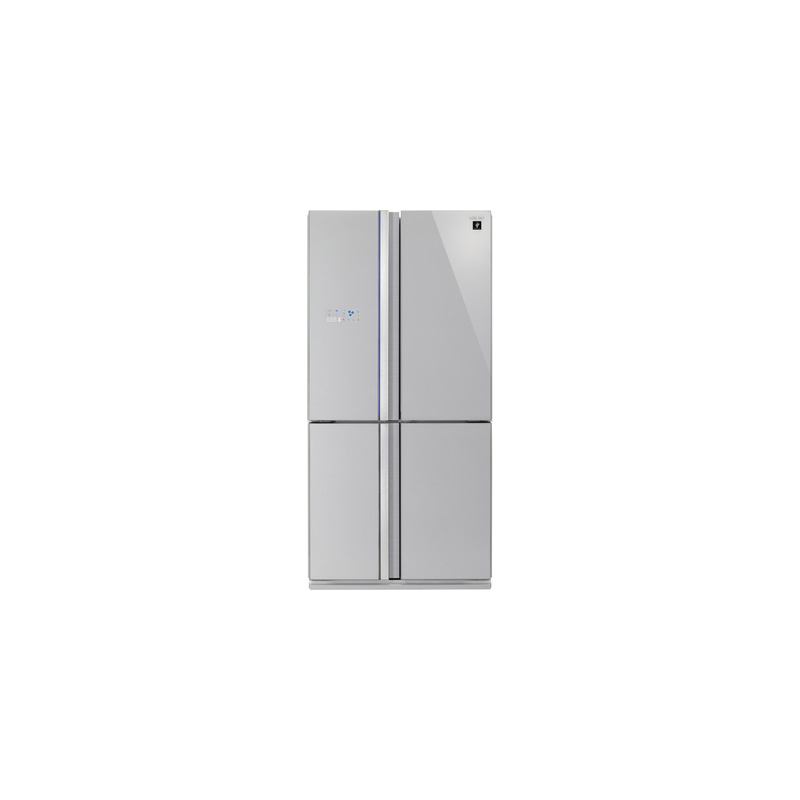 Новая модель 4-дверных холодильников SHARP выполнена в обновленном дизайне и имеет невероятно большой полезный объем 600 литров. Холодильник выполнен в серебристом цвете с покрытием дверей из безрамочного закаленного стекла с абсолютно ровной глянцевой поверхностью.