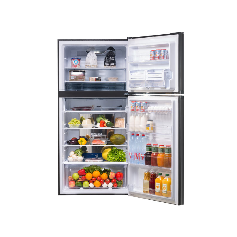 Модельный ряд 2018 года. Серия Grand Top. Холодильник-морозильник объединяет в себе все последние разработки корпорации SHARP: уникальный инверторный компрессор JTECH invert; система охлаждения Extra Cool, благодаря которой можно охладить напитки и еду до температуры, максимально близкой к уровню замерзания, но не замораживать их; функция заморозки Express Freezing, позволяющая приготовить лёд всего лишь за 93 минуты. Уникальная технология ионизации и очистки воздуха Plasmacluster (Плазмакластер) с помощью отрицательно и положительно заряженных ионов деактивирует бактерии и споры грибков плесени в воздухе внутри холодильника, предотвращая их воздействие на продукты и, тем самым, продлевая свежесть продуктов. Модель оснащена уникальной системой охлаждения Hybrid Cooling , которая обеспечивает быстрое и равномерное охлаждение воздуха в холодильной камере, предотвращая заветривание продуктов. Cистема охлаждения Full No Frost не даст образоваться наледи на стенках морозильной камеры и освободит пользователя от необходимости размораживания холодильника. Яркие светодиоды LED равномерно и ярко освещают всё внутреннее пространство холодильника. Внушительные полезные объемы холодильной камеры (422л) и морозильника (178л). Двухсекционный льдогенератор, расположенный в дверях морозильной камеры. Встроенная защита от перепадов напряжения. Класс энергоэффективности А++. Премиальная отделка дверей стеклом.