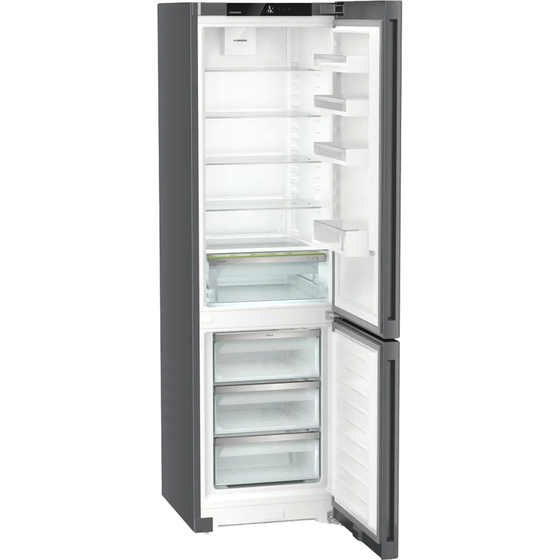 Холодильник Liebherr CNdgc 5703-20 001 Pure — это воплощение передовых технологий и европейского качества. Модель в цвете DarkGrey с дверью из стали станет стильным и надежным элементом современной кухни. Благодаря утопленным вертикальным ручкам и строгому дизайну холодильник визуально выглядит монолитно и лаконично. Общий полезный объем составляет 360 л, что позволяет с легкостью делать запасы на всю семью.