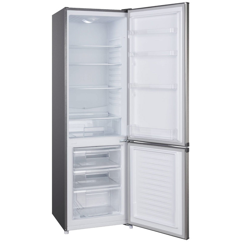Холодильник с нижней морозильной камерой Evelux FS 2220, белый обладает общим объемом 252 л. Оборудование холодильного отделения (188 л) состоит из четырех полок, выполненных из закаленного стекла, пластикового контейнера для фруктов и овощей и четырех дверных карманов. Прилагается подставка для яиц. Светодиодная лампа, расположенная сверху, равномерно освещает все пространство, не влияет на внутренний микроклимат и долго не требует замены. За размораживание отвечает капельная технология. Морозильная камера (64 л) снабжена тремя выдвижными ящиками и способна заморозить до 3 кг продуктов в сутки. В комплекте — форма для льда. Размораживание производится вручную по мере накопления на стенках инея. Если в подаче питания произойдет перебой, низкая температура будет поддерживаться автономно в течение 10 часов. Управление механическое, уровень охлаждения настраивается специальным колесиком, расположенным в верхнем отделении рядом с лампой подсветки. Установлен один стандартный компрессор, система охлаждения заправлена современным хладагентом R600A. Уровень шума при работе не превышает 41 дБ. Климатический класс прибора — ST/N. В год потребляется 241 кВт*ч, что соответствует классу A. Габариты холодильника: 545х545х1794 мм, вес — 45,92 кг. Двери перенавешиваются.