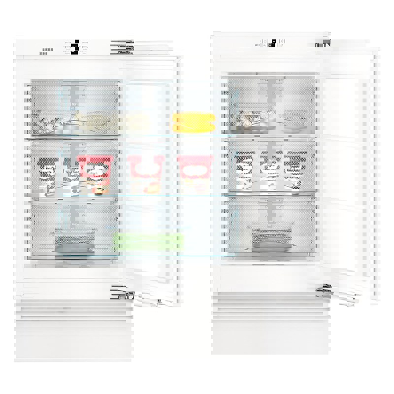 Liebherr SUIGN 1554-26 001 обладает общим объемом 98 литров, что позволяет удобно хранить большое количество продуктов. Внутри камеры расположены полностью закрытые выдвижные ящики системы FrostSafe, которые обеспечивают удобный доступ и надежное хранение продуктов. Прозрачные контейнеры позволяют легко найти нужные продукты, а система VarioSpace позволяет гибко организовать пространство для хранения.