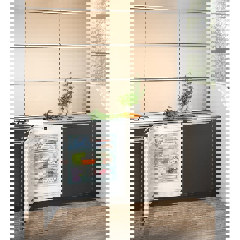 Морозильная камера предназначена для монтажа под столешницу, что делает её незаметной и эргономичной частью кухонного интерьера. Это особенно удобно для тех, кто хочет сохранить единый стиль кухни и минимизировать занимаемое техникой пространство.