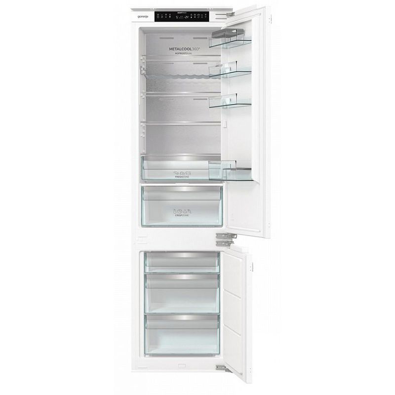 GORENJE NRKI519E82WF — вместительный встраиваемый холодильник высотой 193 см. Модель оснащена жестким креплением, что обеспечивает надежную фиксацию и стабильность конструкции при установке в кухонную мебель.