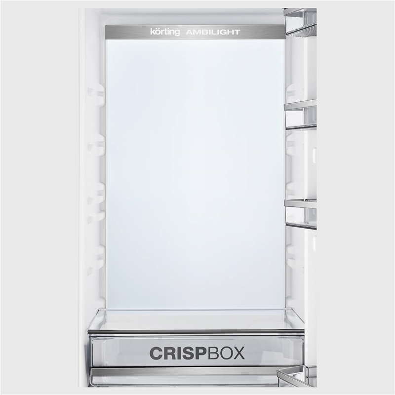 Встраиваемый холодильник Korting KSI 19699 CFNFZ оснащен динамической системой охлаждения. Автоматическая разморозка облегчит уход за прибором. Цифровой дисплей с сенсорным управлением за дверцей удобен для установки нужной температуры. Зона свежести позволит дольше хранить молочные и мясные продукты, а специальный ящик CrispBox идеален для овощей и фруктов. Уникальная технология AMBILIGHT - это светодиодная панель на задней стенке холодильной камеры, что обеспечит наилучший обзор внутреннего пространства.