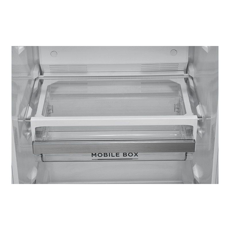 Холодильник также оснащен винной полкой, что позволяет удобно хранить вина, обеспечивая им оптимальные условия. Кроме того, система хранения Mobile Box может быть установлена в морозильную камеру модели MDRE306FZF01, что добавляет удобства в использовании и расширяет возможности хранения продуктов.