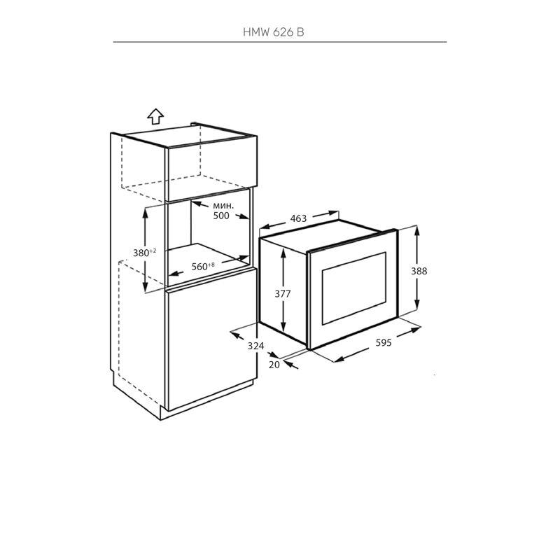 Kuppersberg HMW 626 B — стильная встраиваемая микроволновая печь в современном High-Tech дизайне. Компактные размеры (ширина 59.5 см, высота 38.8 см) позволяют легко встроить её в кухонную мебель. Черный цвет и стеклянные элементы фасада создают премиальный внешний вид.
