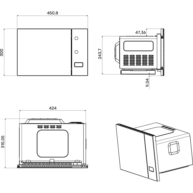 Внутренняя камера оснащена вращающимся поддоном стандартного диаметра, который гарантирует равномерный прогрев блюд со всех сторон. Надежные петли дверцы дополнены доводчиком, обеспечивающим плавное и бесшумное закрытие без резких хлопков.