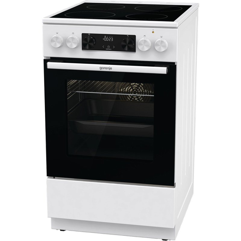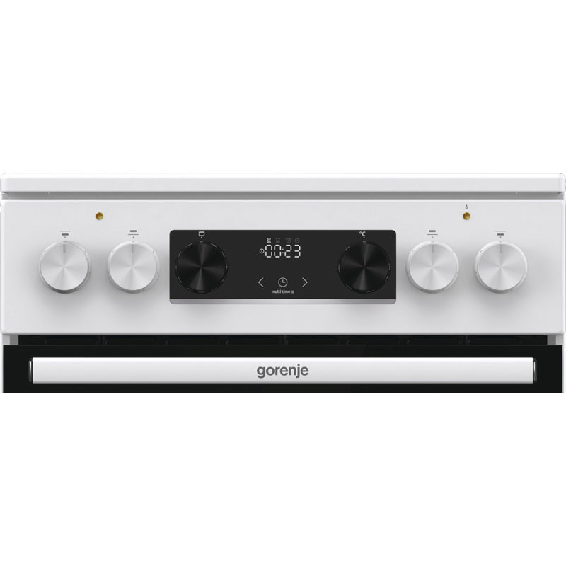 Электрическая плита Gorenje GEC5C61WG имеет корпус белого цвета, а дверцу духовки и варочную панель черного цвета. Такой дизайн смотрится лаконично и подойдет к вашей кухне. При помощи индикаторов остаточного тепла вы сможете определить состояние конфорки после завершения приготовления блюда, насколько сильно нагрета та или иная зона. Эргономичные переключатели и электронный программатор с аналоговым дисплеем помогают настроить режимы работы и таймер. 11 программ приготовления позволяют приготовить разные блюда. Продуманная технология равномерной циркуляции горячего воздуха MultiAir дает возможность готовить на нескольких уровнях сразу.
