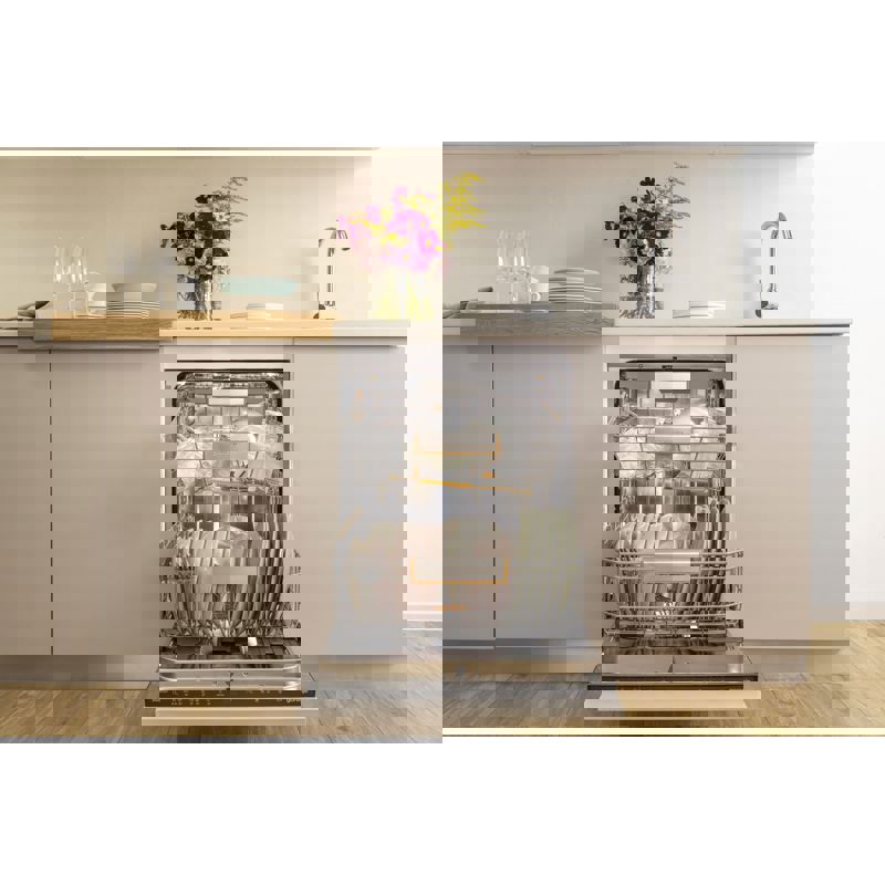 Одной из ключевых особенностей Gorenje является инверторный мотор, который обеспечивает тихую и надежную работу устройства. Уровень шума всего 38 дБ делает эту посудомоечную машину практически бесшумной, что позволяет использовать ее в любое время суток, не беспокоясь о дискомфорте для домочадцев. Энергоэффективность класса А+++ гарантирует низкое потребление электроэнергии, что не только экономит ваши средства, но и заботится о природе.