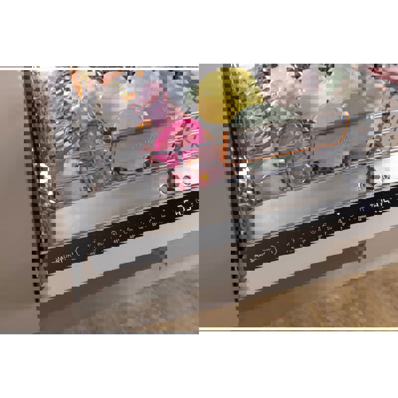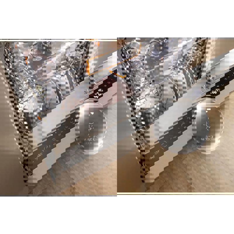 Посудомоечная машина оснащена функцией отсрочки старта, что позволяет вам планировать цикл мойки в удобное время. Благодаря Wi-Fi управлению, вы можете контролировать процесс мойки прямо со своего смартфона, что добавляет удобства в повседневное использование. Сенсорное управление делает процесс настройки простым и интуитивно понятным, позволяя легко выбирать нужные программы и режимы.