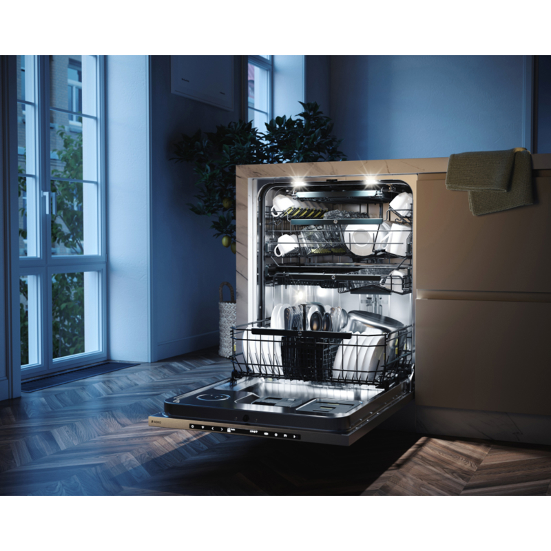 Одним из ключевых преимуществ ASKO DFI747U/1 является её вместительность. Машина рассчитана на 14 комплектов посуды, что позволяет загружать большое количество посуды за один раз. Три уровня загрузки обеспечивают гибкость в размещении посуды различного размера и формы, что делает процесс загрузки и разгрузки максимально удобным.