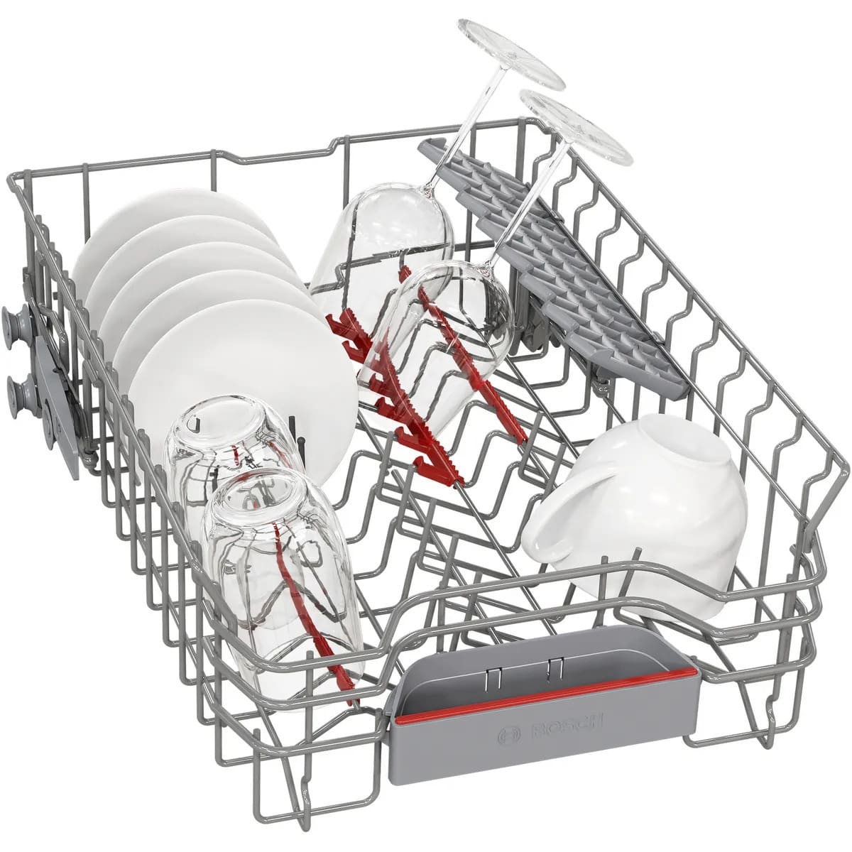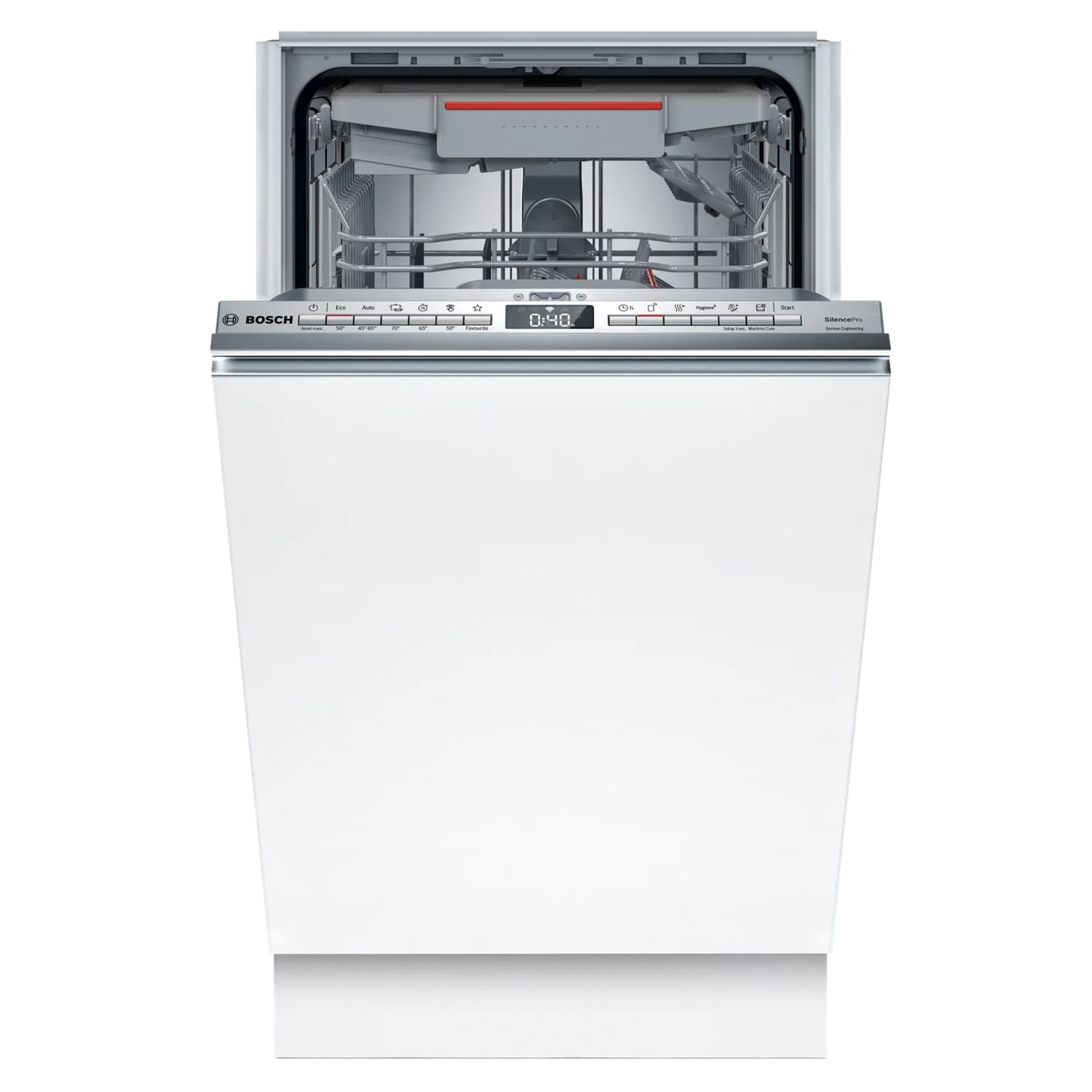 Встраиваемая посудомоечная машина Bosch SPV4HMX65Q — это функциональное решение для вашей кухни. Она имеет узкий дизайн и элегантную серебристую панель управления. На панели расположен информативный дисплей, который отображает наличие ополаскивателя, соли и время до окончания программы.