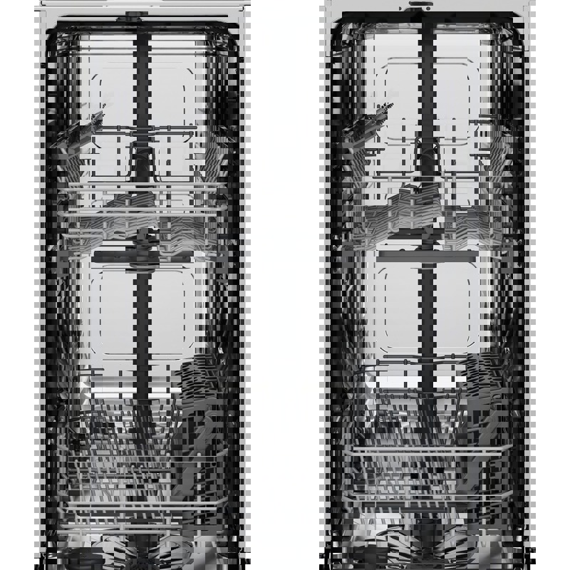Встроенные вращающиеся разбрызгиватели сверху и снизу обеспечивают равномерное покрытие воды по всей поверхности посуды. Верхняя корзина регулируется по высоте для удобства загрузки крупногабаритных предметов. Машина работает тихо и эффективно, сохраняя уровень шума на уровне комфортных 44 дБ. Надежность и качество подтверждены современными технологиями Electrolux.