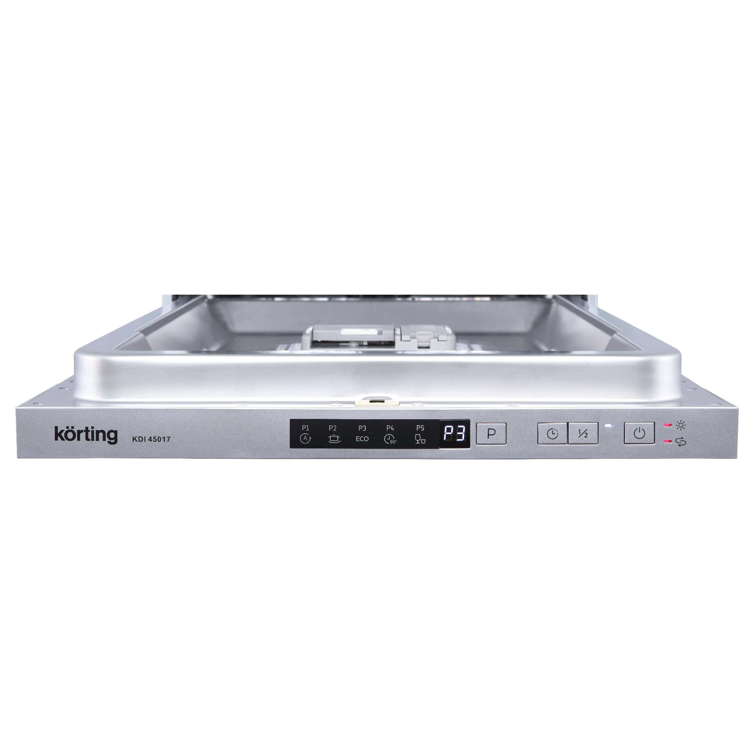 KORTING KDI 45017 — это встраиваемая посудомоечная машина шириной 45 см, предназначенная для установки в кухонные шкафы. Она способна вместить до 10 комплектов посуды и оснащена тремя корзинами для удобного размещения различных предметов. Машина обладает цифровым дисплеем, 5 программами мойки, функцией отложенного старта, лучом на полу, половинной загрузкой, автооткрыванием дверцы, полной защитой от протечек, проточным ТЭНом и конденсационной сушкой. Энергоэффективность класса А++ и уровень шума 47 дБ делают её экономичной и тихой в работе.