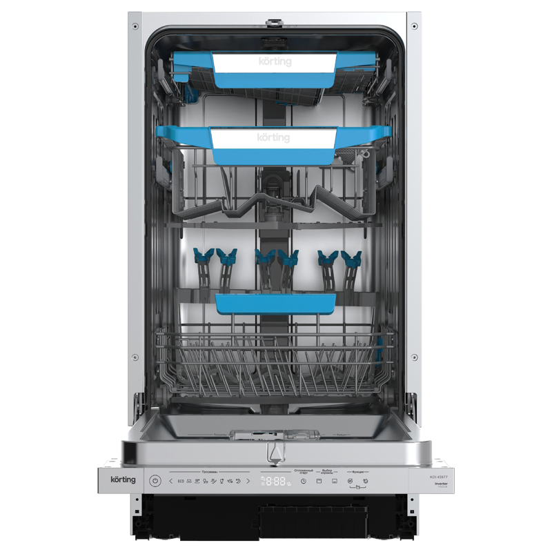 Korting KDI 45977 – это встраиваемая посудомоечная машина шириной 45 см, которая сочетает эффективность, низкий уровень шума и удобное управление. Благодаря своей компактности она отлично впишется даже в небольшую кухню, а мощный инверторный мотор и 9 программ мойки гарантируют высокое качество очистки.