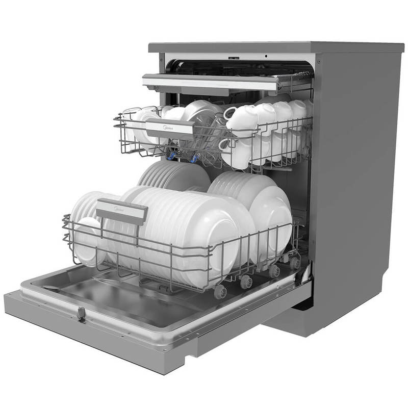 Посудомоечная машина Midea MFD60S350Si относится к моделям с отдельностоящей конструкцией. Она предусматривает размещение под столешницей кухонной мебели. В модели реализованы 10 автоматических программ, которыми можно управлять на сенсорной панели с дисплеем и удаленно по Wi-Fi через приложение SmartHome на мобильном устройстве. Голосовой ассистент Алиса выполняет команды пользователей и упрощает взаимодействие с посудомоечной машиной.