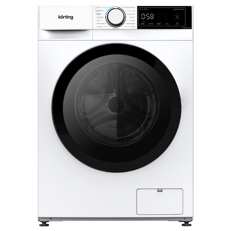 Стирально-сушильная машина Korting KWD 48IT1496 представлена в элегантном белом цвете, который гармонично впишется в любой интерьер. Компактные размеры (высота 85 см, ширина 59,5 см, глубина 47,5 см) делают её идеальным выбором для современных квартир.