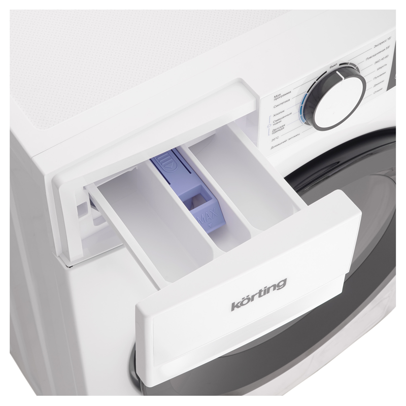 Одной из ключевых особенностей Korting KWM 45IS148 является функция паровой обработки. Паровая стирка помогает удалить глубоко въевшиеся пятна и освежить ткани без использования дополнительных химических средств. Это особенно полезно для аллергиков и тех, кто предпочитает более экологичные методы стирки.
