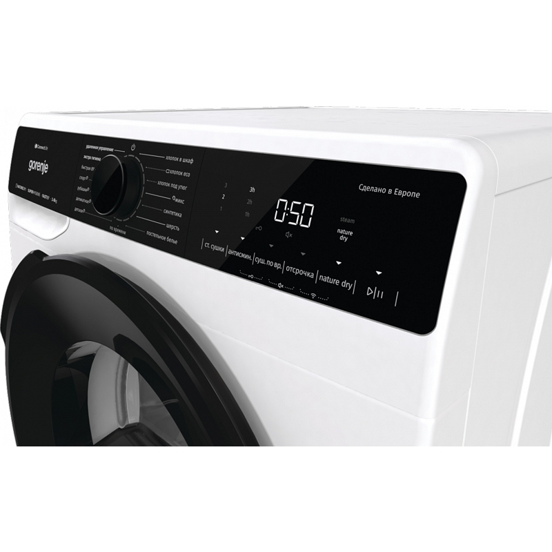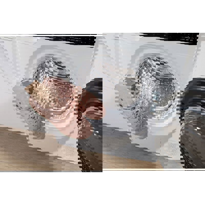 Цифровой дисплей с индикацией времени делает процесс управления простым и интуитивно понятным. Вы всегда будете в курсе оставшегося времени до завершения цикла сушки. Благодаря Wi-Fi управлению, вы можете контролировать работу сушильной машины прямо со своего смартфона, что добавляет удобства в повседневное использование. Подсветка барабана обеспечивает хорошую видимость внутри, позволяя вам легко загружать и выгружать белье.