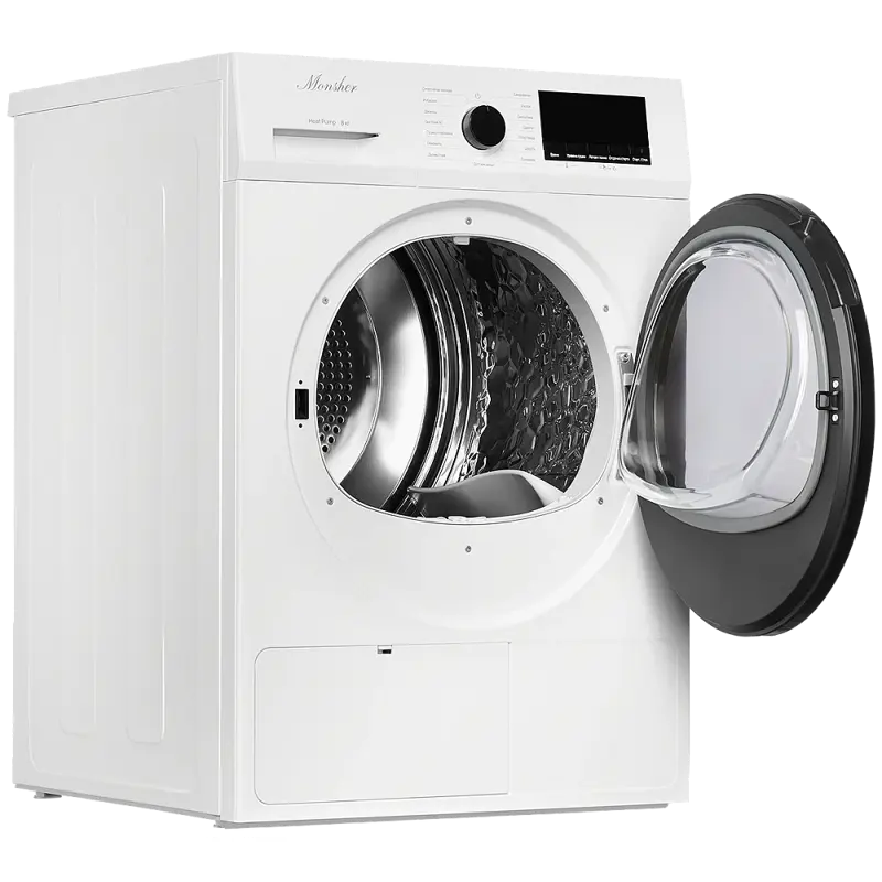 Сушильная машина Monsher MDM 630 Blanc обеспечивает высший класс сушки - A, благодаря тепловому насосу (Heat Pump). Компактные размеры (59.5 см x 84.5 см x 63 см) и вместительность до 8 кг белья делают ее отличным выбором для вашей бытовой техники.