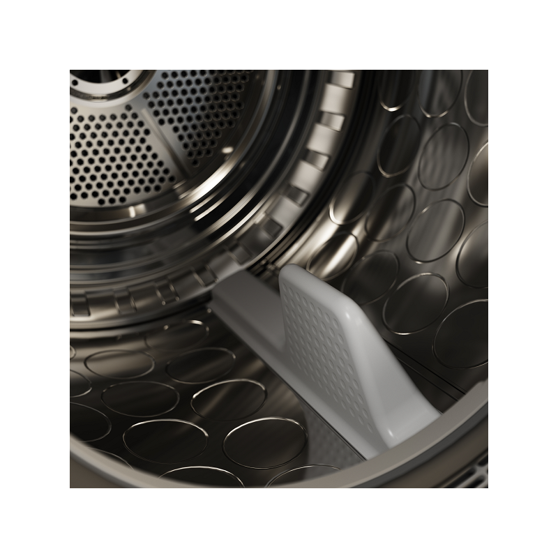 Сердцем системы является уникальная технология SensiDry, которая с помощью точных датчиков постоянно анализирует температуру и влажность внутри барабана. Это позволяет устройству автоматически рассчитать необходимое время сушки и остановиться ровно в тот момент, когда белье достигает заданной степени влажности, полностью исключая риск пересушивания. Барабан объемом 145 литров оснащен запатентованной системой лопастей Butterfly. Они направляют движение белья по траектории, напоминающей восьмерку, что предотвращает сминание и скручивание вещей в комок, обеспечивая равномерную просушку и бережное отношение даже к самым деликатным тканям.