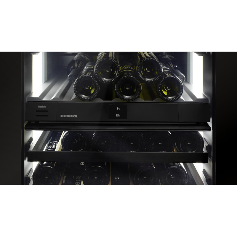 Встраиваемый винный шкаф Liebherr UWgbi 3682-20 001 входит в линейку Vinidor Selection и позволяет хранить до 32 бутылок. Общий объем составляет 95 л.