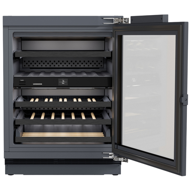 Встраиваемый винный шкаф Liebherr UWpri 3662-20 001 входит в линейку Vinidor Selection и позволяет хранить до 32 бутылок. Общий объем составляет 93 л.