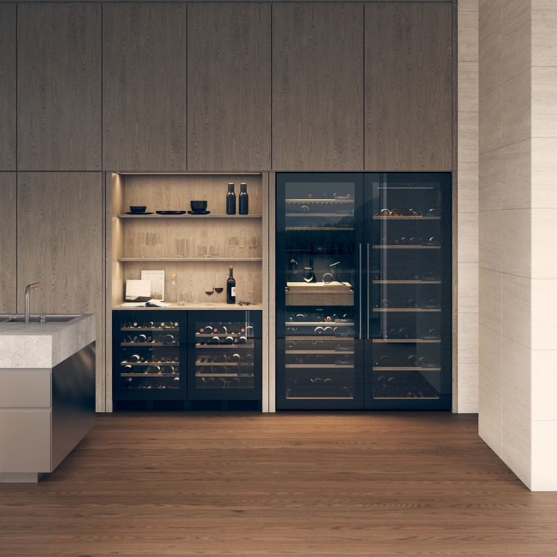 Винный шкаф включает инновационные функции: электронное управление с уведомлениями о состоянии, контроль температуры и влажности через приложение ConnectLife — проверка настроек, инвентаризация коллекции. Каждая полка выполнена из дерева с доводчиком закрывания и меловой табличкой для маркировки. Дверь с системой нажимного открытия и плавного закрытия обеспечивает комфортную эксплуатацию. Двухслойное стекло с УФ-фильтром защищает содержимое от света, а два угольных фильтра поддерживают свежесть воздуха внутри шкафа.
