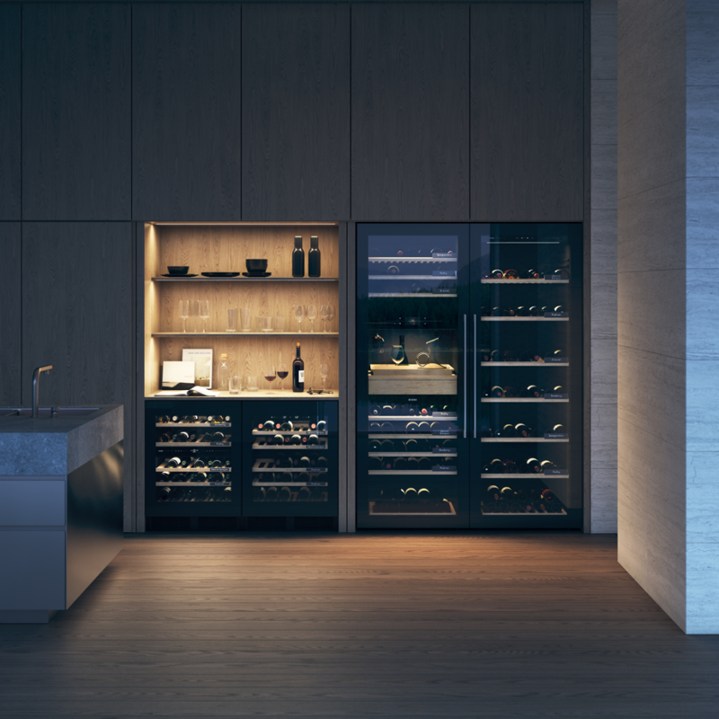 Встроенное LED-освещение не только подсвечивает бутылки, создавая эффектную презентацию коллекции, но и позволяет легко находить нужный напиток. Освещение можно регулировать, создавая атмосферу в зависимости от настроения.