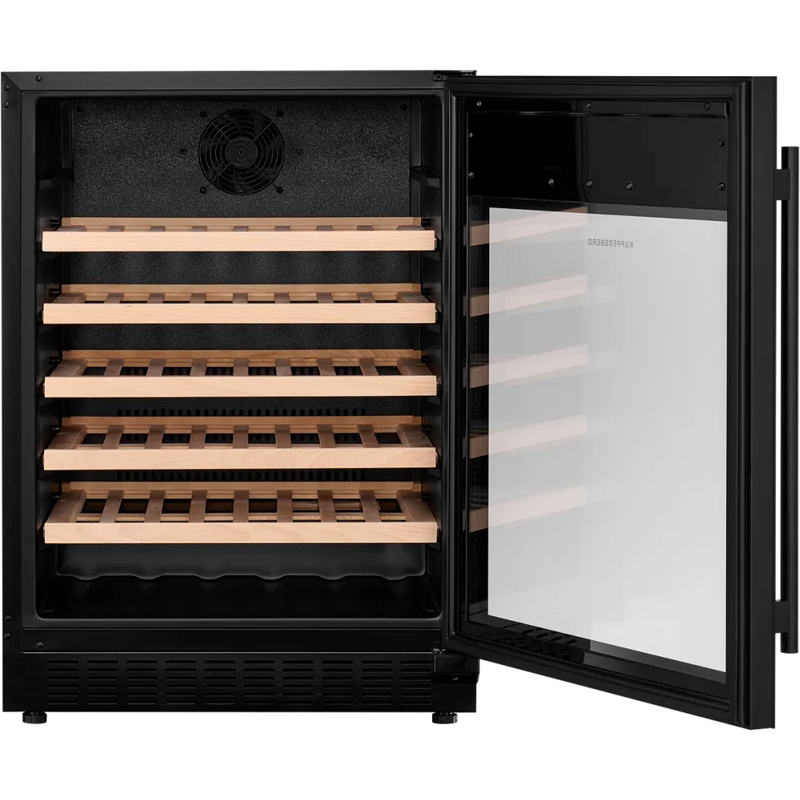 Благодаря внушительному объему в 135 литров, шкаф способен вместить до 54 бутылок вина стандартного размера. Пять полок из натурального бука не только обеспечивают надежную поддержку бутылок, но и создают уютную атмосферу внутри шкафа. Продуманная организация пространства позволяет удобно разместить коллекцию напитков.